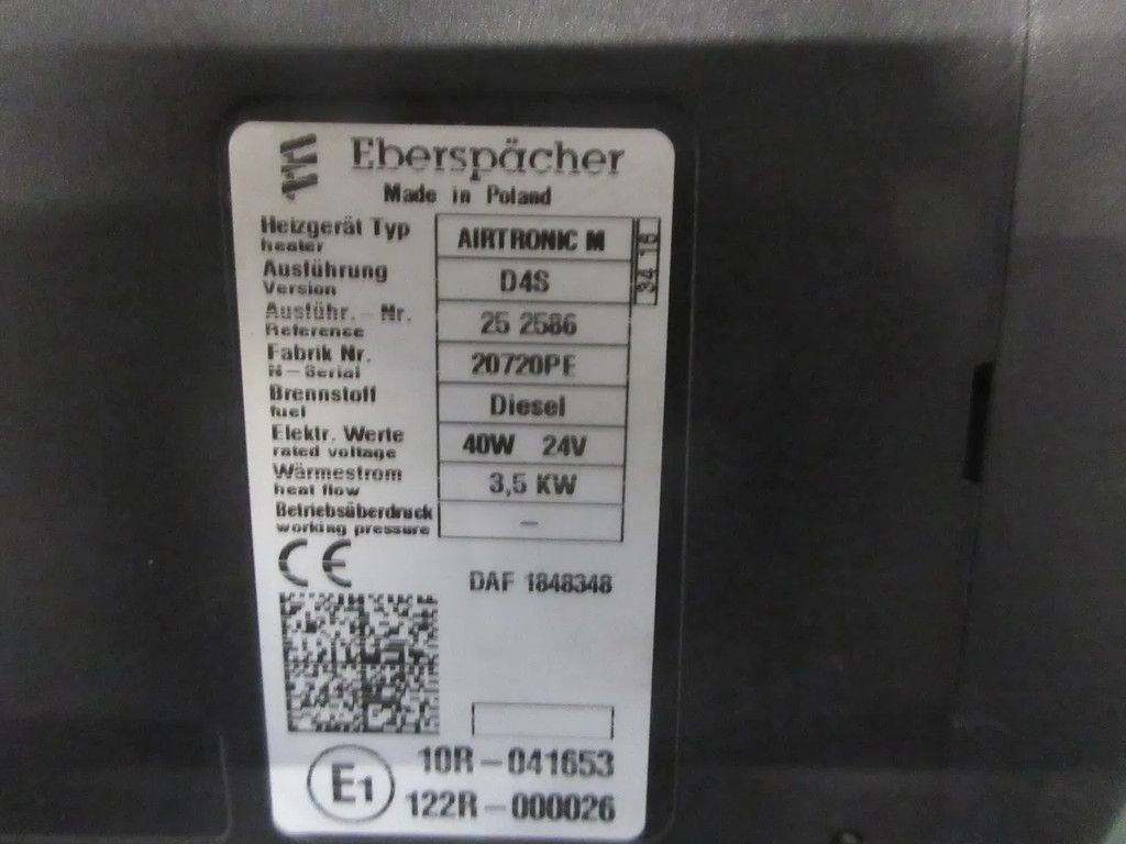 DAF 1848348 EBERSPACHER D 4S DAF XF 440 EURO 6 MODEL 2016